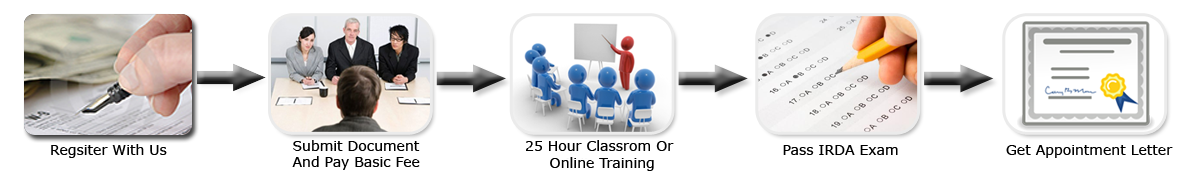 2.Online or Offline Training: Once you are through the registration process, you will have to go for Online or Offline Training of 25 hours. Upon completion of the training, you will be awarded with a training certificate. The training covers all the aspects of Life Insurance Business.